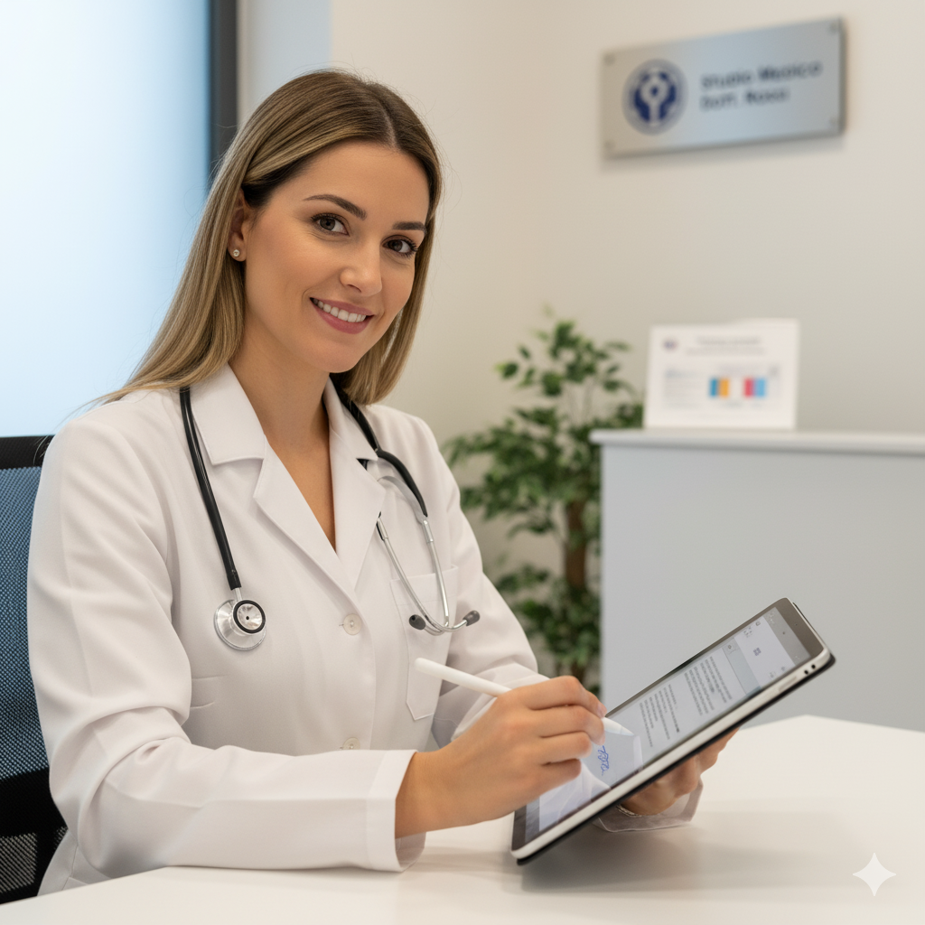 - Firma: Il paziente firma con la Apple Pencil sullo schermo. L’applicazione cattura i dati grafometrici.